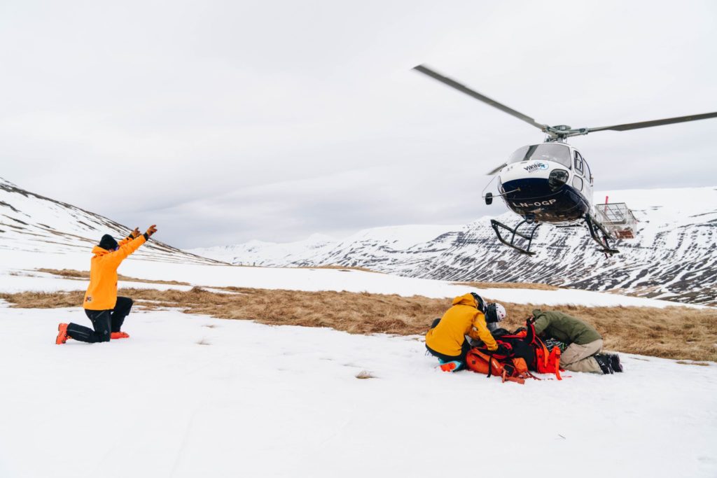 The safety and avalanche briefings are conducted on the first day of skiing before the first take-off.